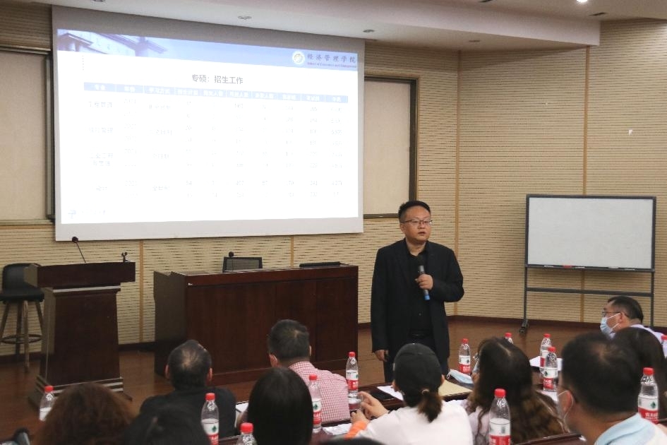 副院长李良向大家报告了学院2022年学术型硕士研究生招生、开题、答辩,本学期本科教学安排、教材选用审核、毕业设计(论文)答辩,以及开展课程思政建设、培训讲座等工作情况。