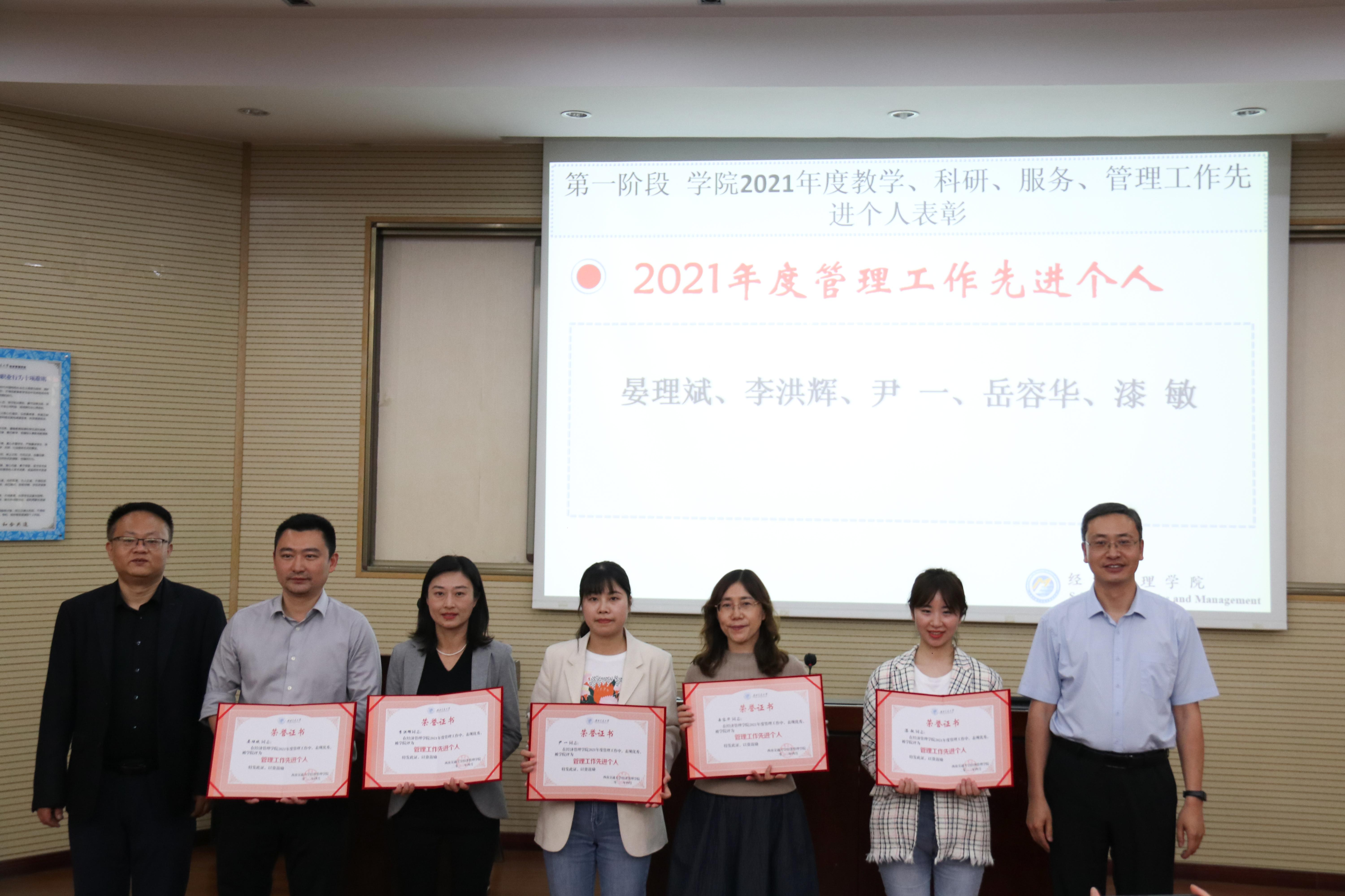 第一阶段,学院2021年度教学、科研、服务、管理工作先进个人表彰。