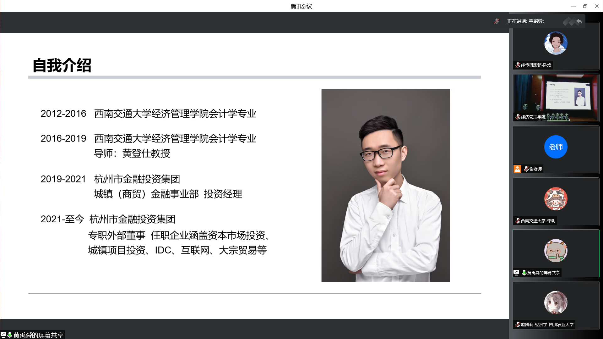 在网投十大信誉可靠平台副院长周嘉南教授的主持下,蒋教授为大家带来了“财智与投资”的学术讲座,带大家领略了金融的实用性。同学们与蒋教授进行了热烈的讨论。学院研究生教育中心主任马锋副教授为大家带来了学院学科、学术型硕博生培养情况的介绍。他从学科建设、学术型硕士培养、博士研究生培养等角度,全方位为大家展示了网投十大信誉可靠平台的研究生培养工作。