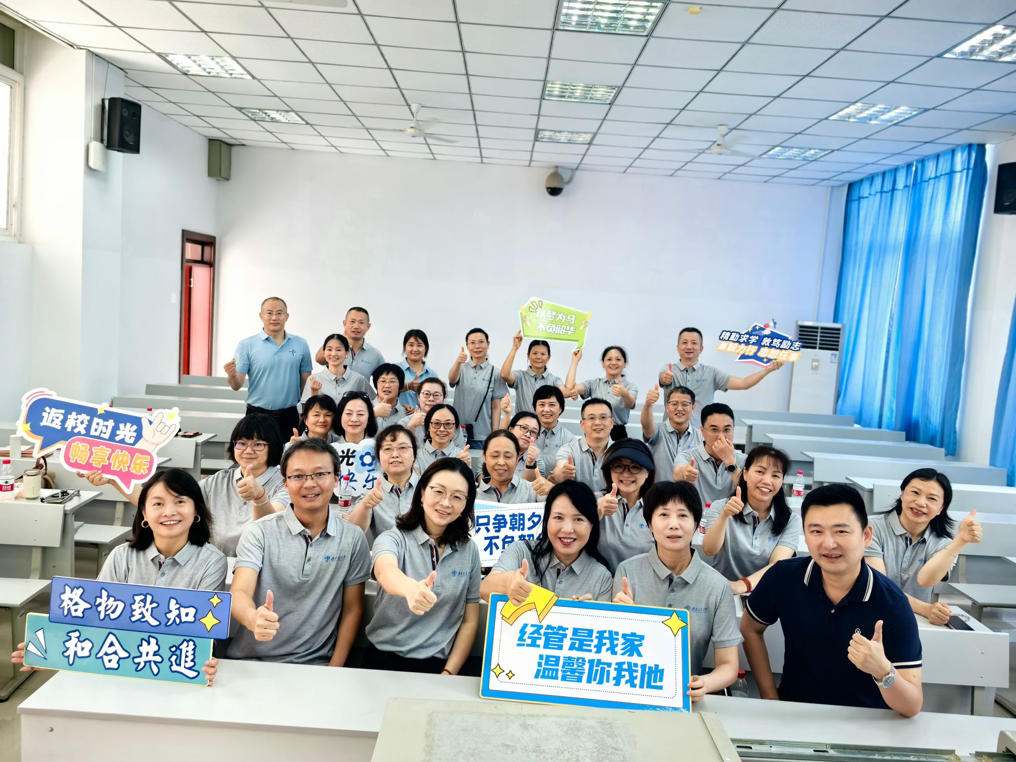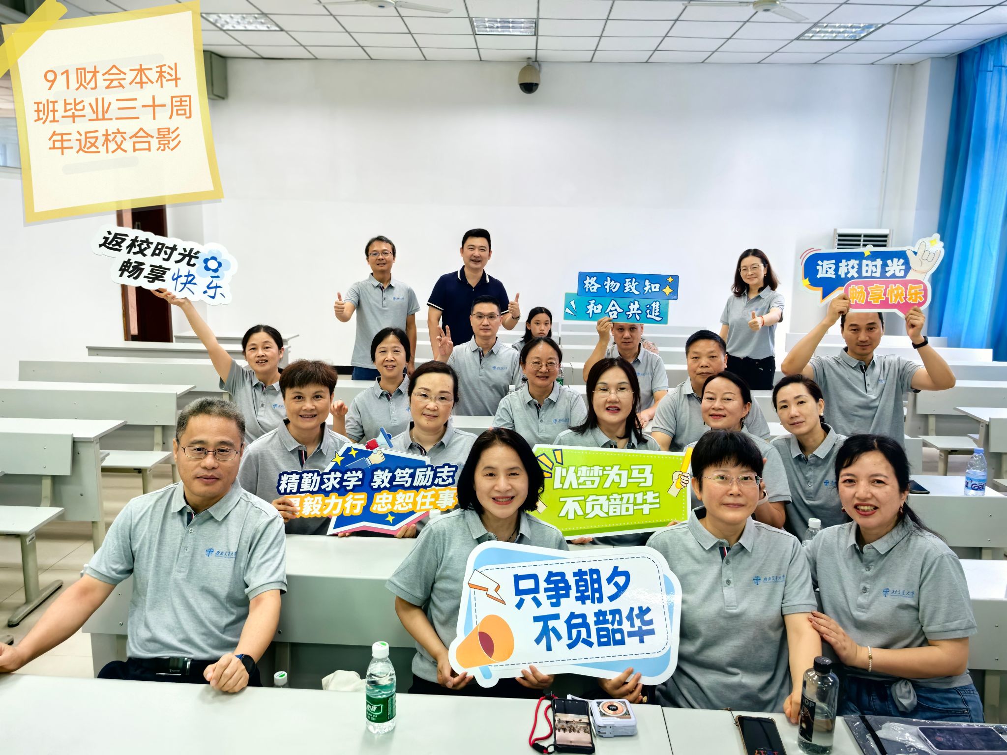 当日下午,雨过天晴,阳光正好。学院领导、老师与各班校友在峨眉校区六号教学楼见面。学院领导为校友们送上深情祝福,师生围坐在一起,回忆往昔校园时光,畅谈各自工作生活经历,笑声与话语声交织,展现出浓浓的师生情谊与同窗情谊。