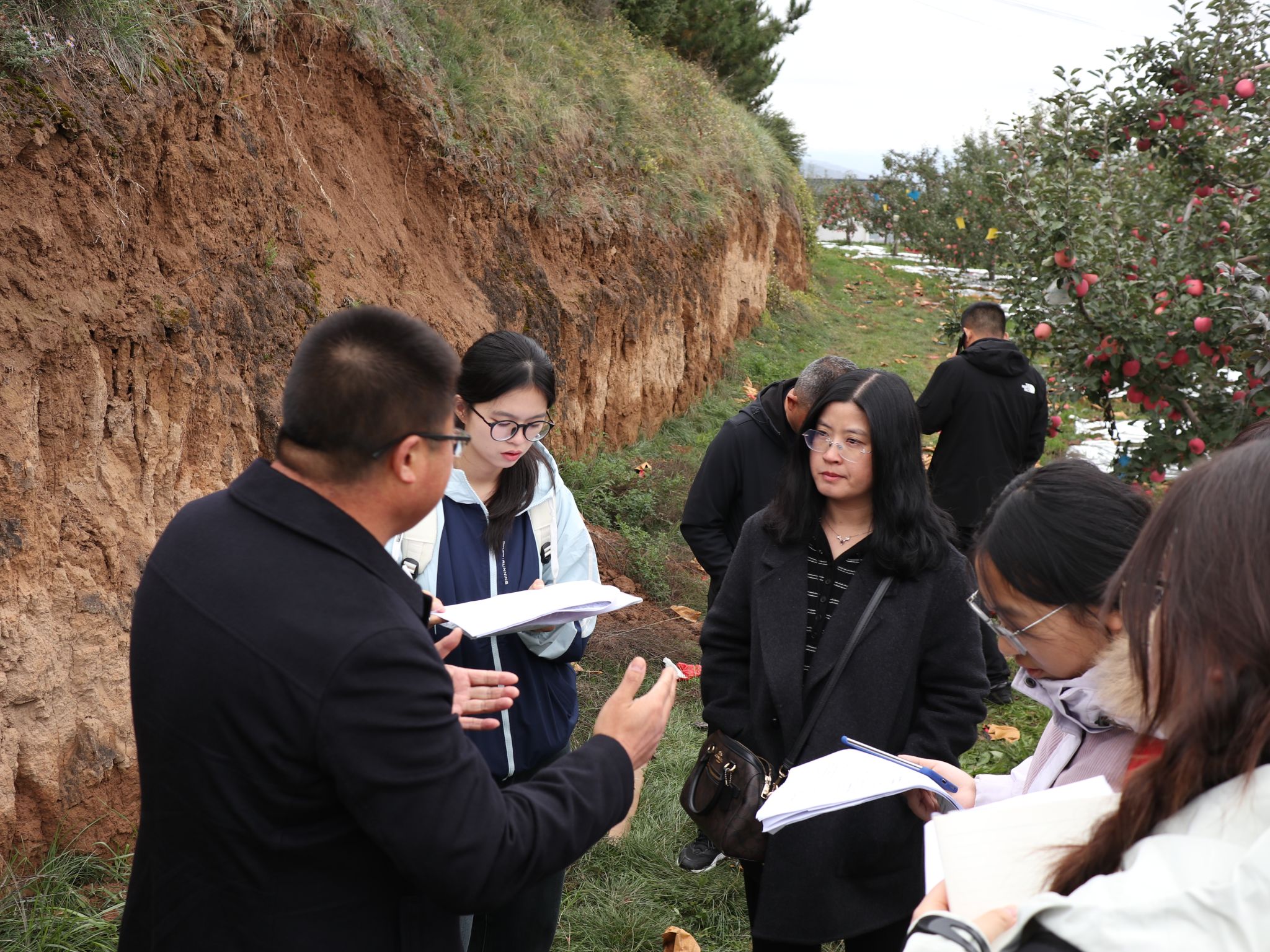 此外,团队还深入王尹镇胡坪村、闫家沟苹果生产基地,实地考察标准化果园管理,并与闫家沟农业专业合作社等新型农业经营主体围绕技术推广、成本构成与农户带动成效进行了现场研讨。