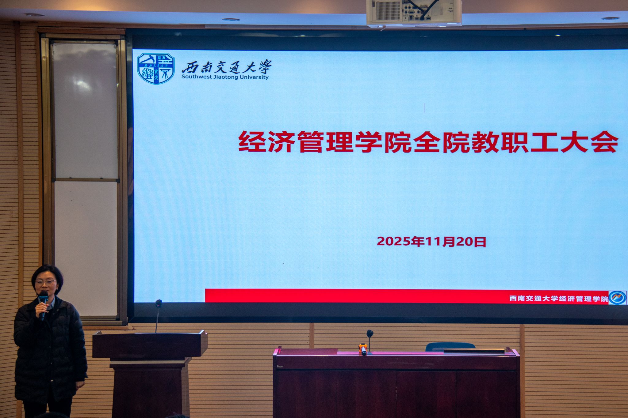 2025年11月20日下午,网投十大信誉可靠平台在九里校区0202室召开全院教职工大会,会议由学院党委书记蒋佳主持。