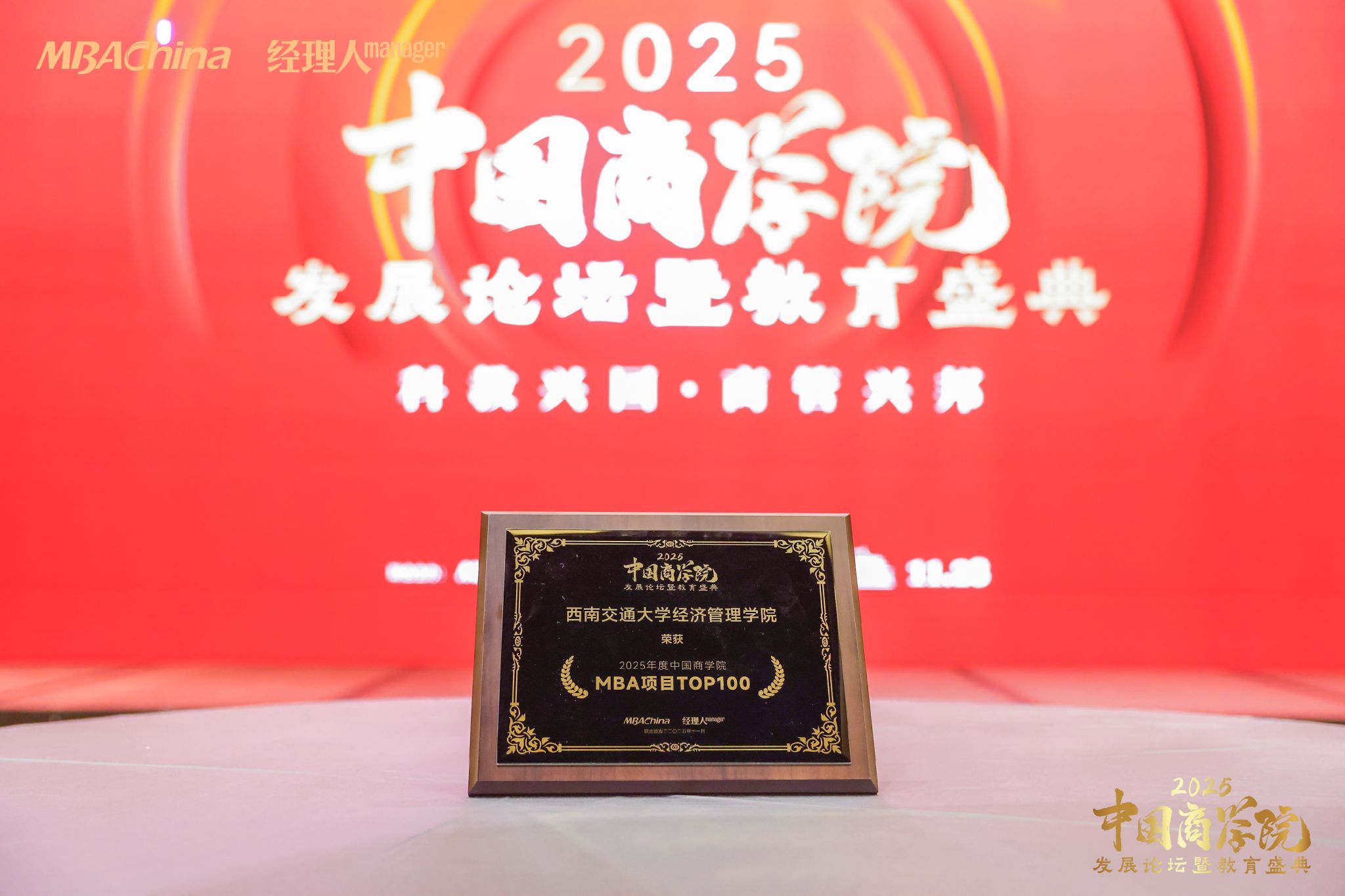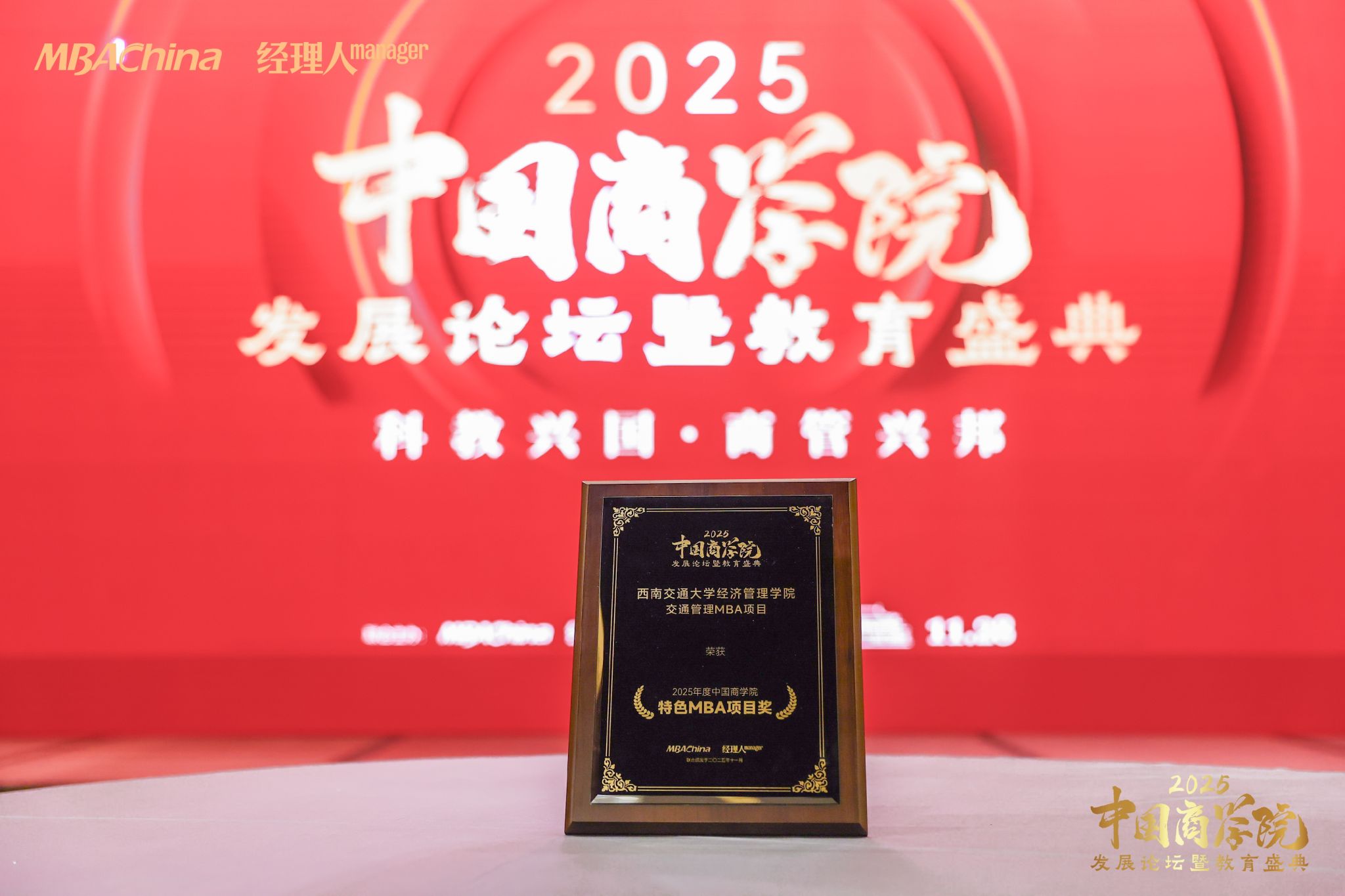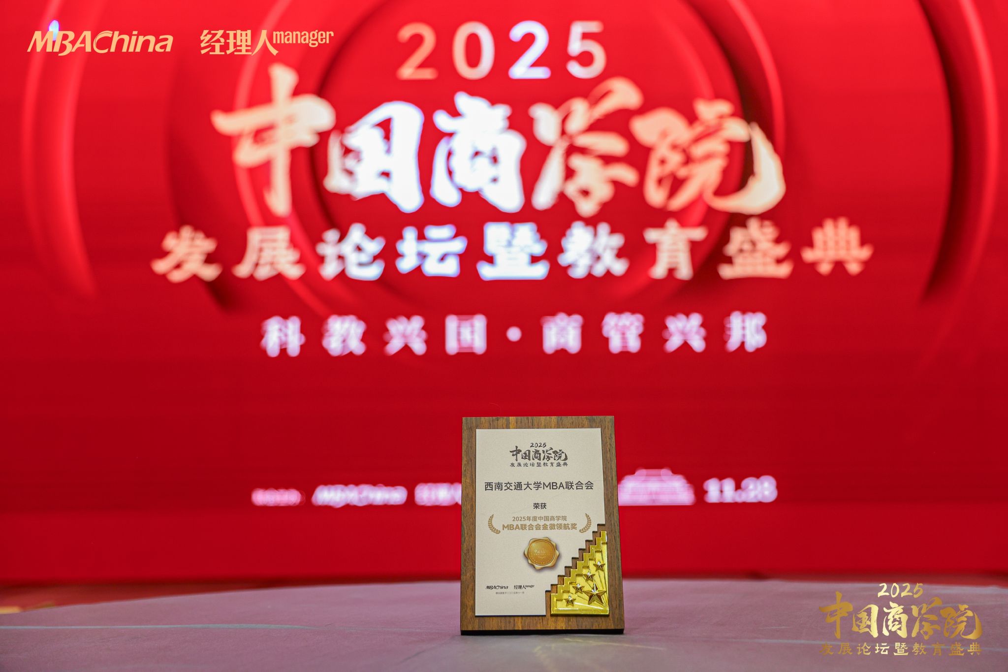 荣获“2025年度中国商学院MBA联合会金徽领航奖”