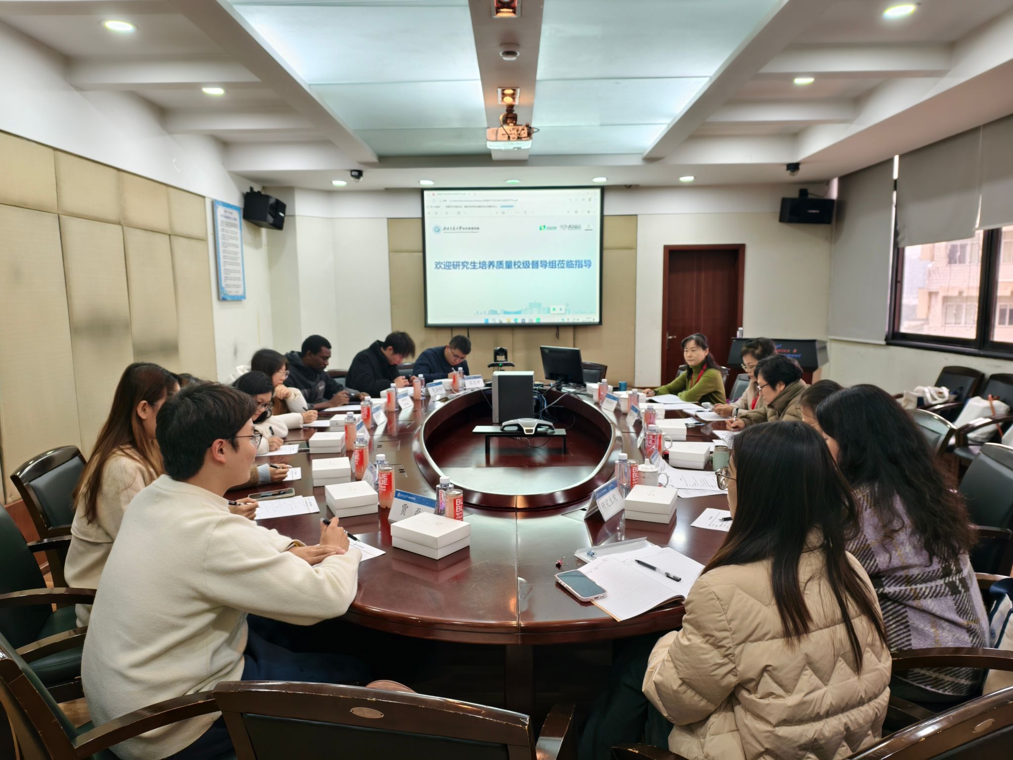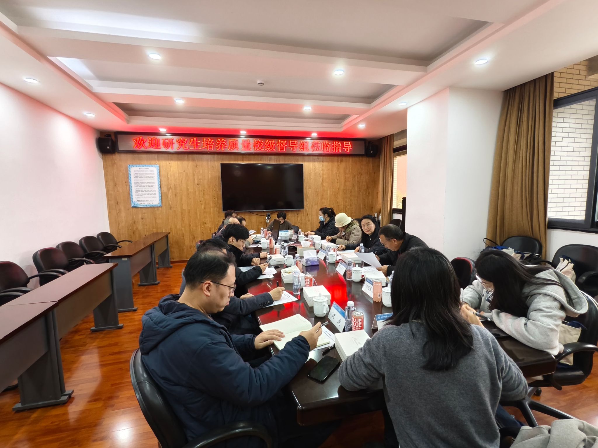 校级督导专家组首先对研究生课程教学存档材料、学业档案盒、论文开题和中期考核报告、博士生年度考核材料等进行详细的督查并做详细记录,随后分两组与学院老师代表和研究生代表进行座谈调研。