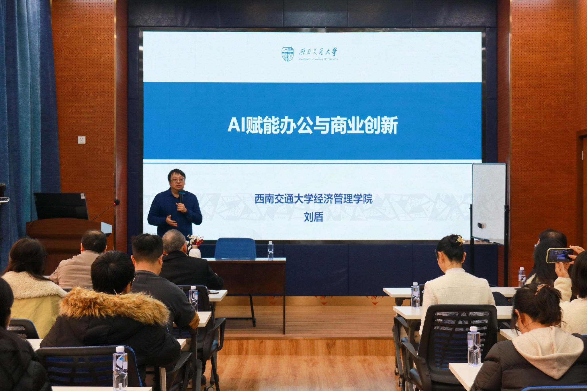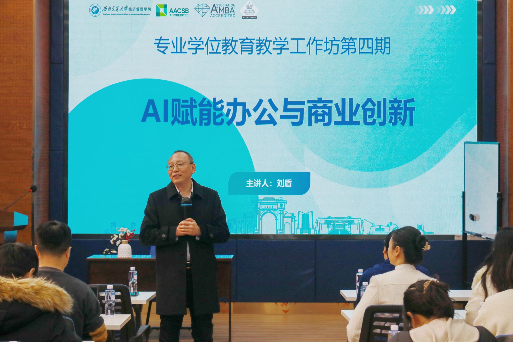 2025年12月11日下午,专业学位教育教学工作坊第四期在九里校区0218教室进行,网投十大信誉可靠平台刘盾教授以“AI赋能办公与商业创新”为题开展专题讲座,共同探寻人工智能技术在办公场景优化与商业价值创造中的实践路径与创新可能。本次活动由网投十大信誉可靠平台副院长李良主持,吸引了学院教师的广泛参与。
