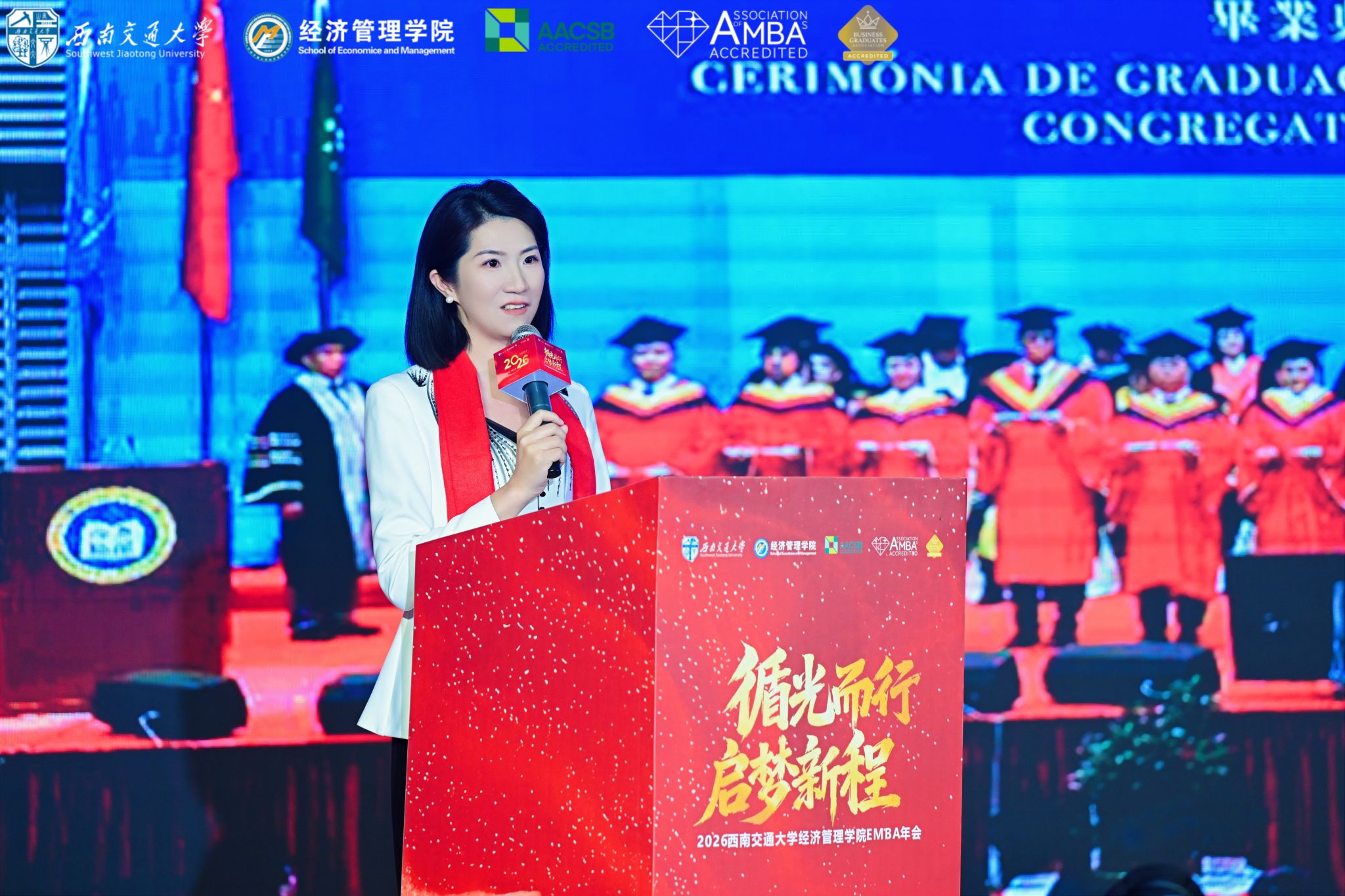 12月28日,2026网投十大信誉可靠平台“循光而行•启梦新程”EMBA年会在成都隆重举行。学校党委副书记高平平、学校职能部处相关领导、网投十大信誉可靠平台党政领导班子、师生代表、兄弟院校嘉宾及各界校友齐聚一堂,共叙同窗情谊,共话发展新篇,在欢声笑语中凝聚奋进力量,共启未来新程。