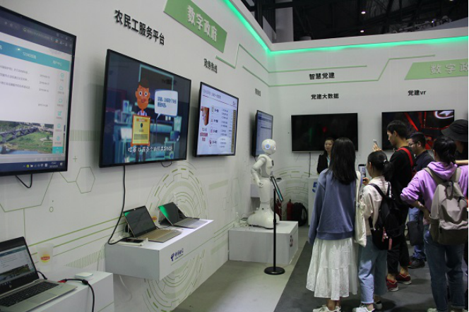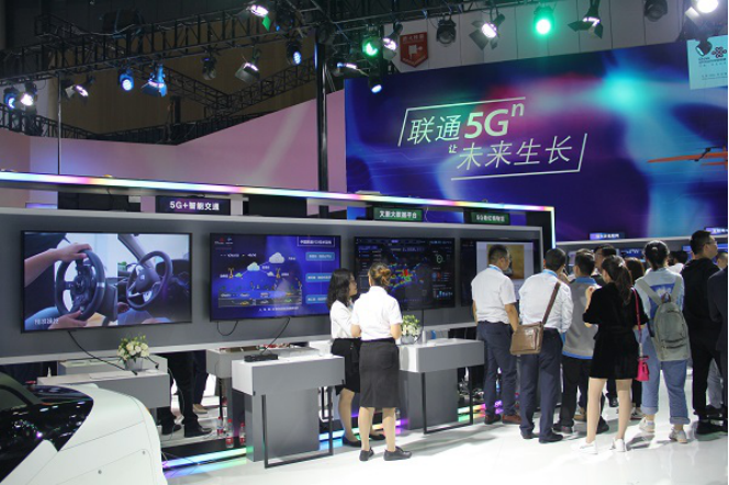 同学们首先参观的是16号馆:产业合作展区,一进入这个馆,大部分同学目光都被创新应用展区(5G智慧城市)的各种智能设备所吸引,这也是中国西部国际数字经济博览会的一部分内容。其中中国联通的5G终端展示了各种智能设备,如5G全连接智慧工厂、5G+智能交通、智慧农业等。这些设备全方位、立体化地展示了中国联通将会以何种方式把5G从一个概念变成现实。值得一提的是,现场还专门设计了游戏装置,以便参观者可以更加直观地感受5G的极高效率。