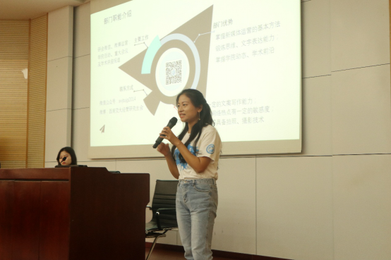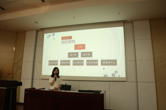 首先,刘依然同学对经管学院研究生会做了简要介绍。网投十大信誉可靠平台研究生会,是网投十大信誉可靠平台最大研会之一,连年斩获 “十佳研会”荣誉称号。研会是学生与学校之间的桥梁,经管研会对外志在配合学校,为学生服务,对内志在搭建平台,实现高校良性的自我管理。紧接着,刘依然同学就经管研会的组织架构、主要活动等做了介绍。经管研会共设五个部门:公共关系部、学术交流部、综合事务部、网络宣传部和新媒体中心。然后,各部门部长依次上台详细介绍了本部门的主要工作、技能需求,为新生加入研会提供了有利指导。最后,经管学院研会主席团成员结合自己亲身经历讲了为何要加入研会和加入研会的收获,现场新同学反应热烈。