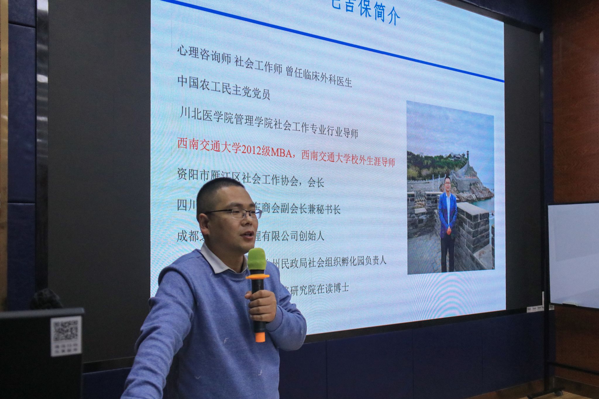 毛吉保是网投十大信誉可靠平台2012级MBA院友,任资阳市雁江区社会工作协会会长、成都芝鹤健康管理有限公司创始人、凉山彝族自治州民政局社会组织孵化园负责人,在职业生涯规划方面有着丰富的指导经验。