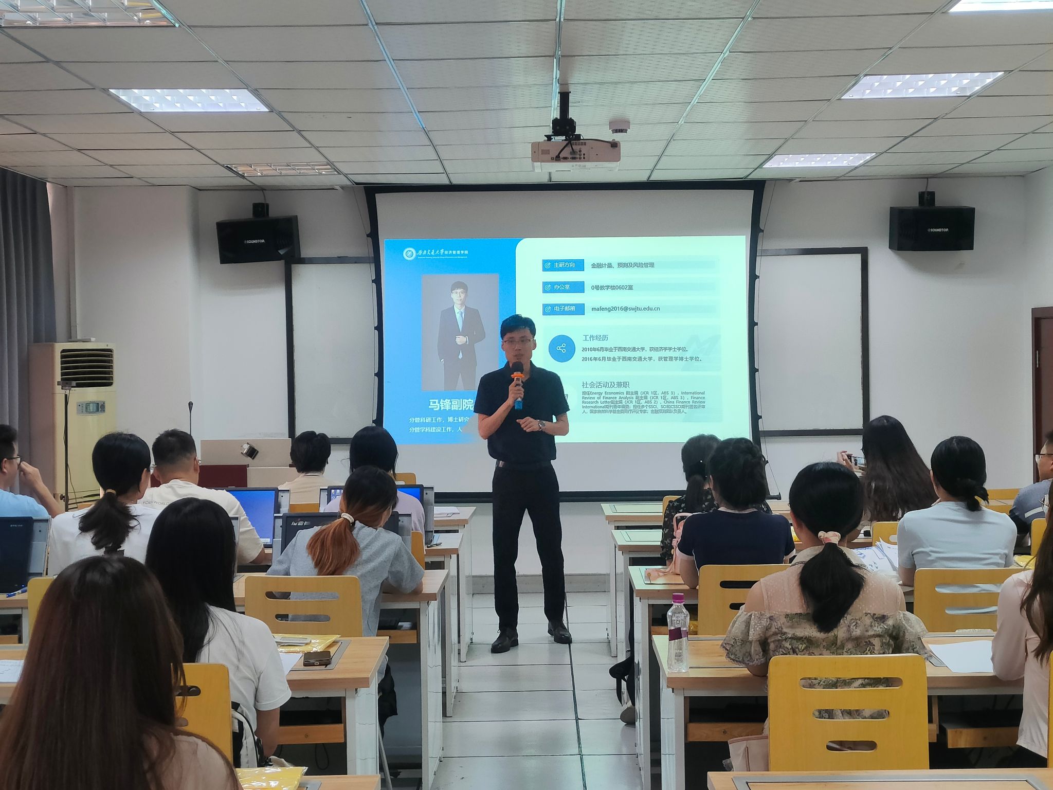 2024年9月1日早上10点在0202教室举行了2024级新生学术道德教育,由学院负责科研工作的马锋副院长主讲,2024级研究生辅导员王哿老师主持。
