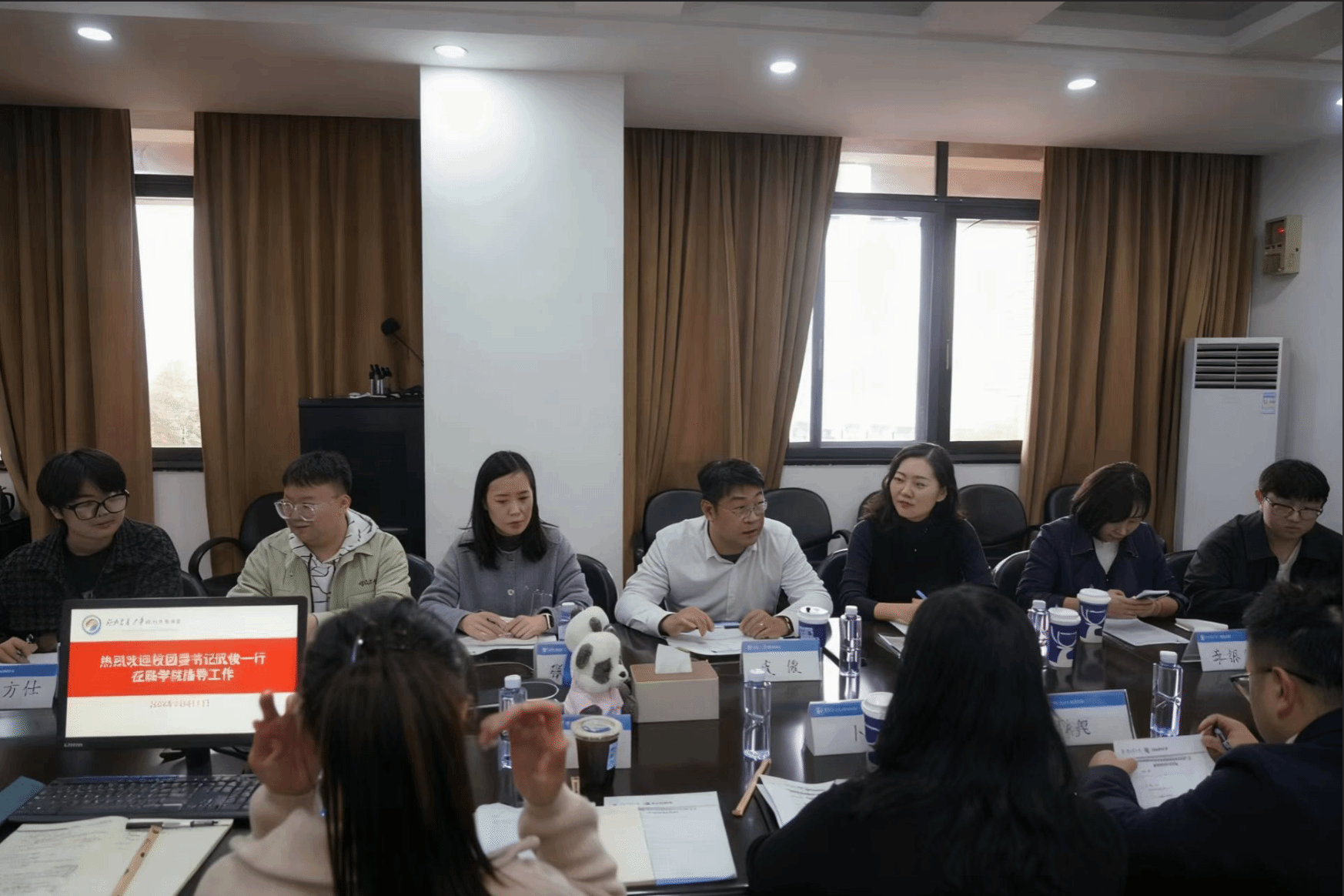 会上,学院团委书记贾佳围绕学院团委基本情况、工作特色亮点、难点与挑战进行汇报。贾佳从学院团委工作架构、团学组织、品牌活动打造等方面介绍了基本情况,随后围绕锚定国家战略、整合“校友+社会”资源、构建“1234”实践育人体系的三大核心特色工作方向展开详细阐述。同时,结合实际工作,提出了当前学院团委工作面临的实际困难和亟待解决的具体问题。