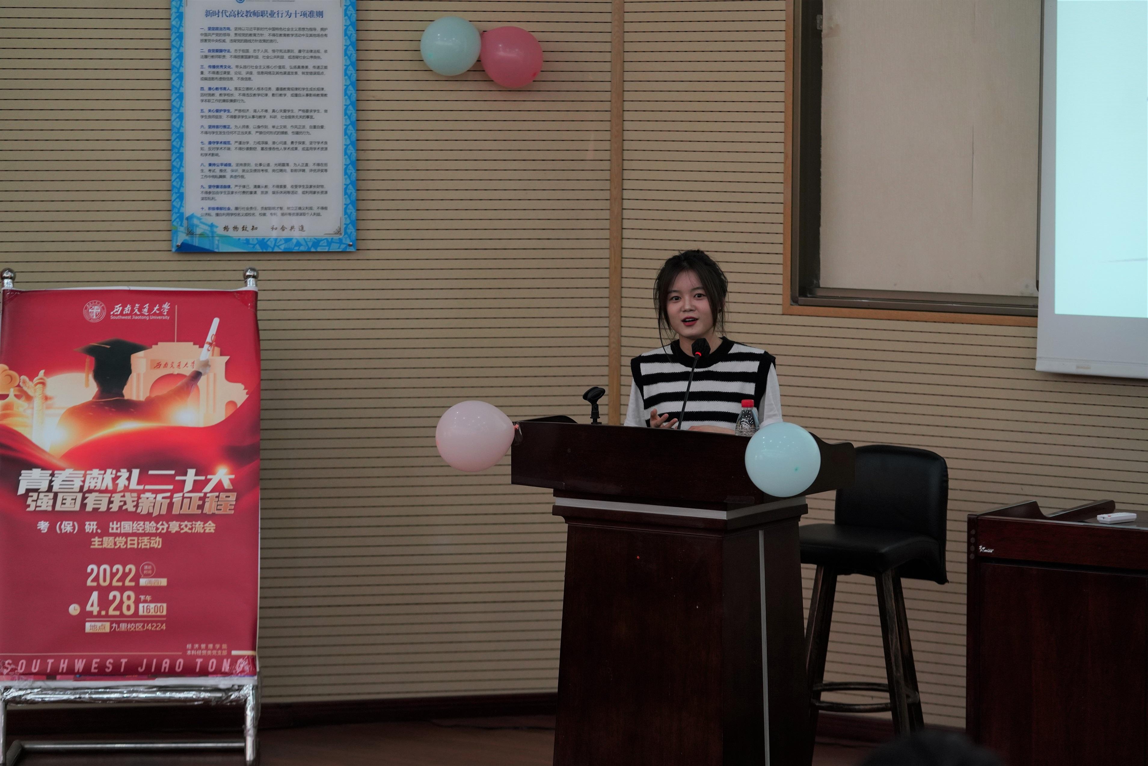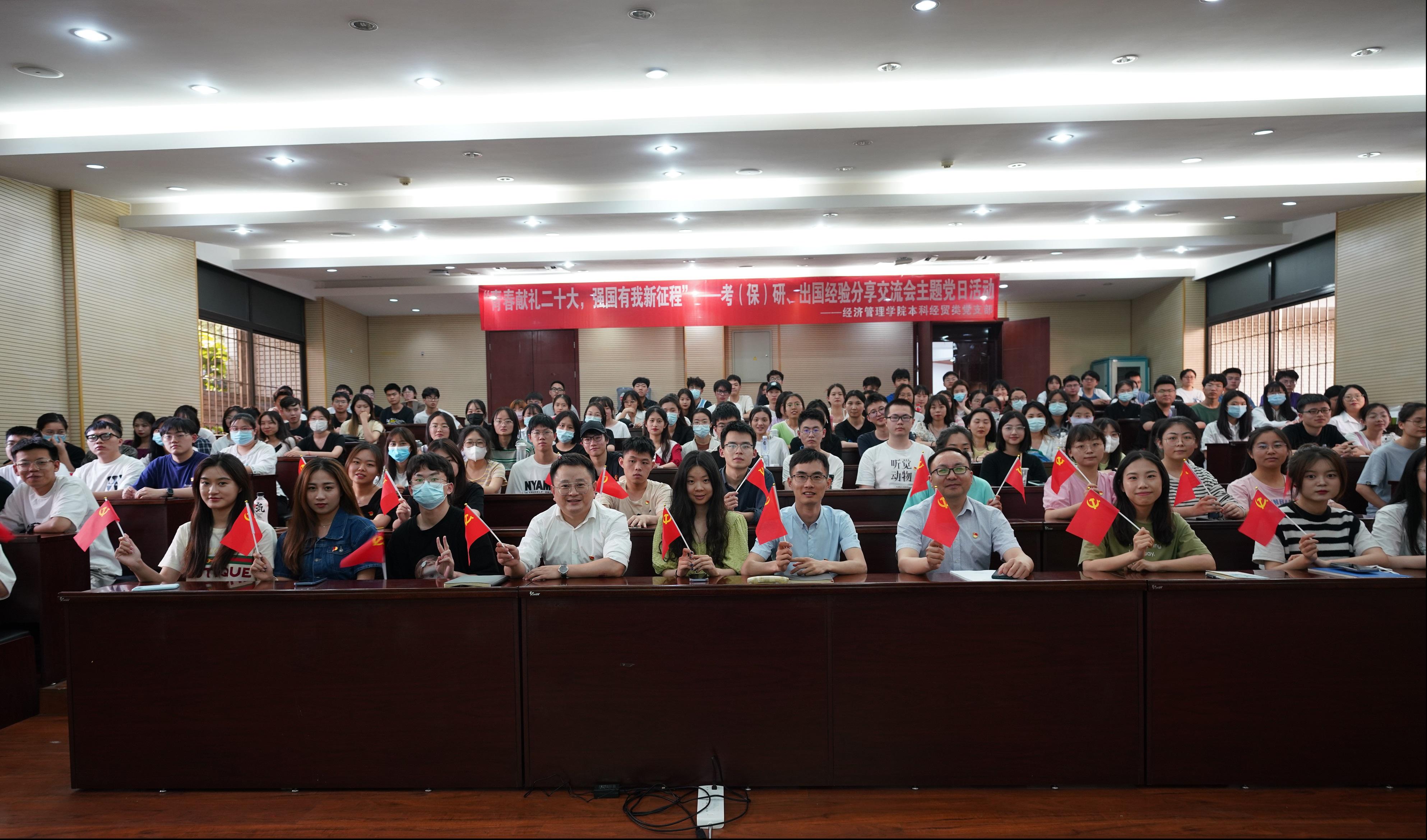 为深入学习贯彻习近平新时代中国特色社会主义思想,引领学生深刻领悟“两个确立”的决定性意义,增强“四个意识”,坚定“四个自信”,做到“两个维护”,弘扬伟大建党精神,以优异成绩迎接党的二十大胜利召开;同时深入贯彻实施学院党委就业指导工作“进支部”的要求,网投十大信誉可靠平台本科经贸类党支部于2022年4月28日在J0202举办了“青春献礼二十大,强国有我新征程”主题党日活动,邀请本科2018级部分同学对考研、保研、出国等方面进行经验分享交流,党支部全体党员、积极分子参与此次活动。