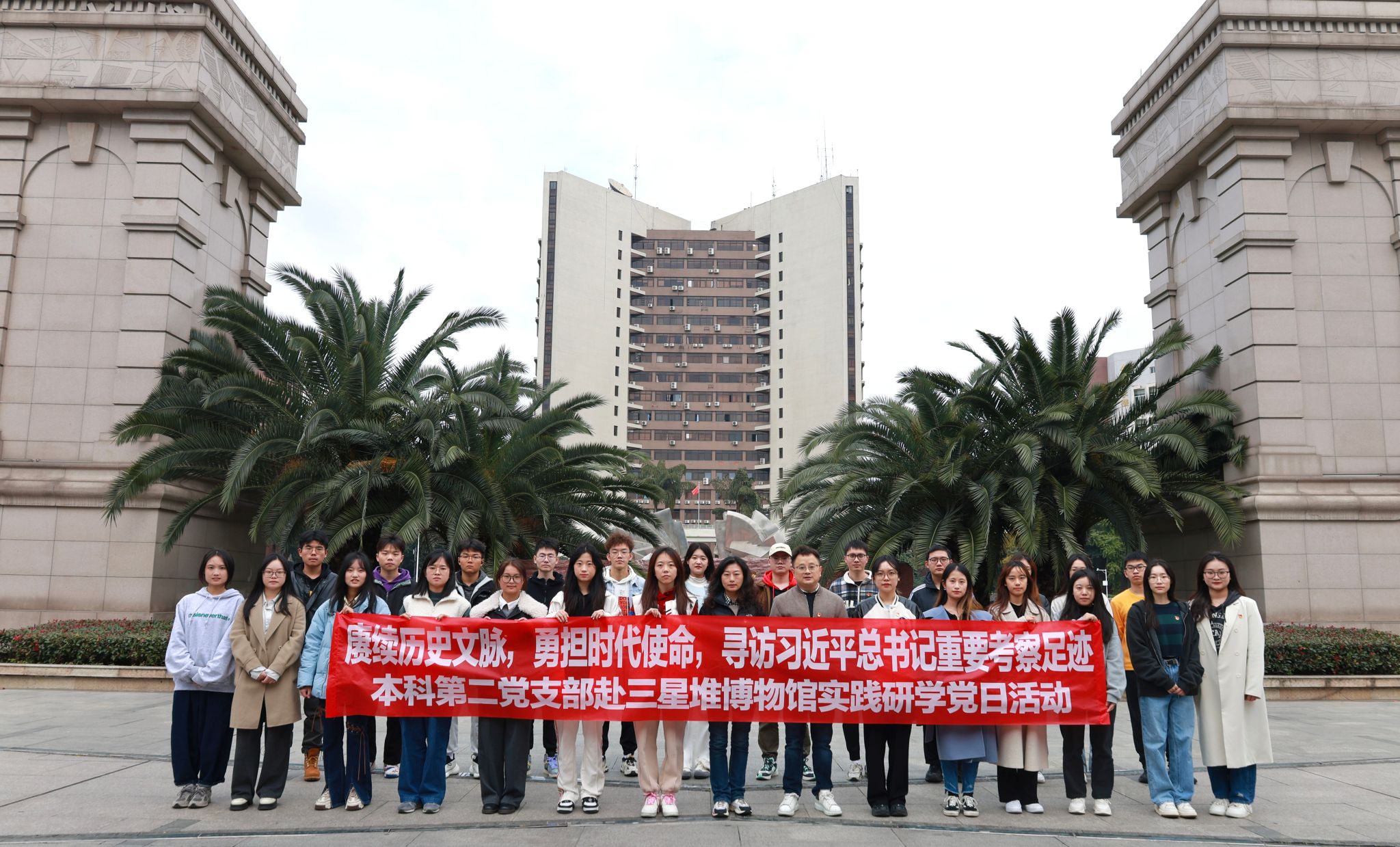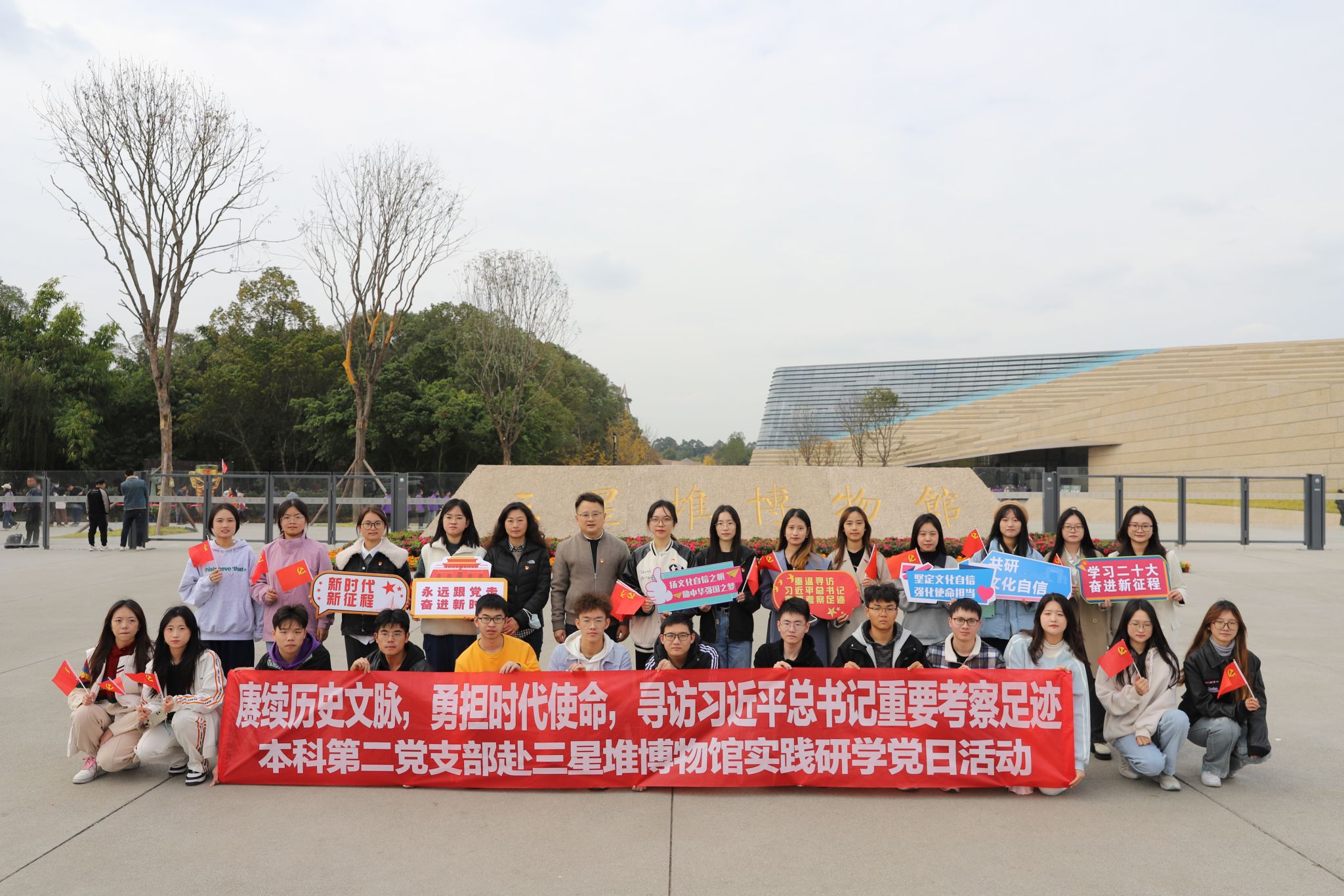 为扎实推进学习贯彻习近平新时代中国特色社会主义思想主题教育,深入贯彻落实习近平总书记在四川考察时的重要指示精神,弘扬传承中华优秀传统文化,坚定文化自信,建设文化强国,11月30日,网投十大信誉可靠平台本科第二党支部24名党员、入党积极分子在学院党务秘书李洪辉、本科第二党支部书记陈建奇的带领下,前往广汉市三星堆博物馆,开展“赓续历史文脉,勇担时代使命,寻访习近平总书记重要考察足迹——三星堆博物馆实践研学”主题党日活动。