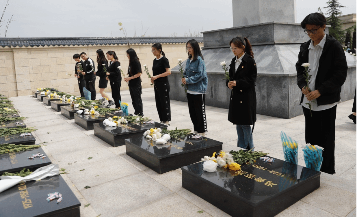 "风吹旷野纸钱飞,古墓垒垒春草绿”。下午13时50分,党支部成员来到烈士墓,向英雄敬礼,向烈士默哀。大家手捧素雅白菊,深深三鞠躬,向英烈们致以最崇高的敬意和最深切的怀念。热血难凉,他们是民族的脊梁。在这无声的祭奠中,每一位成员都以实际行动寄托哀思,坚定了继承英烈遗志、对党忠诚、矢志不渝的决心。