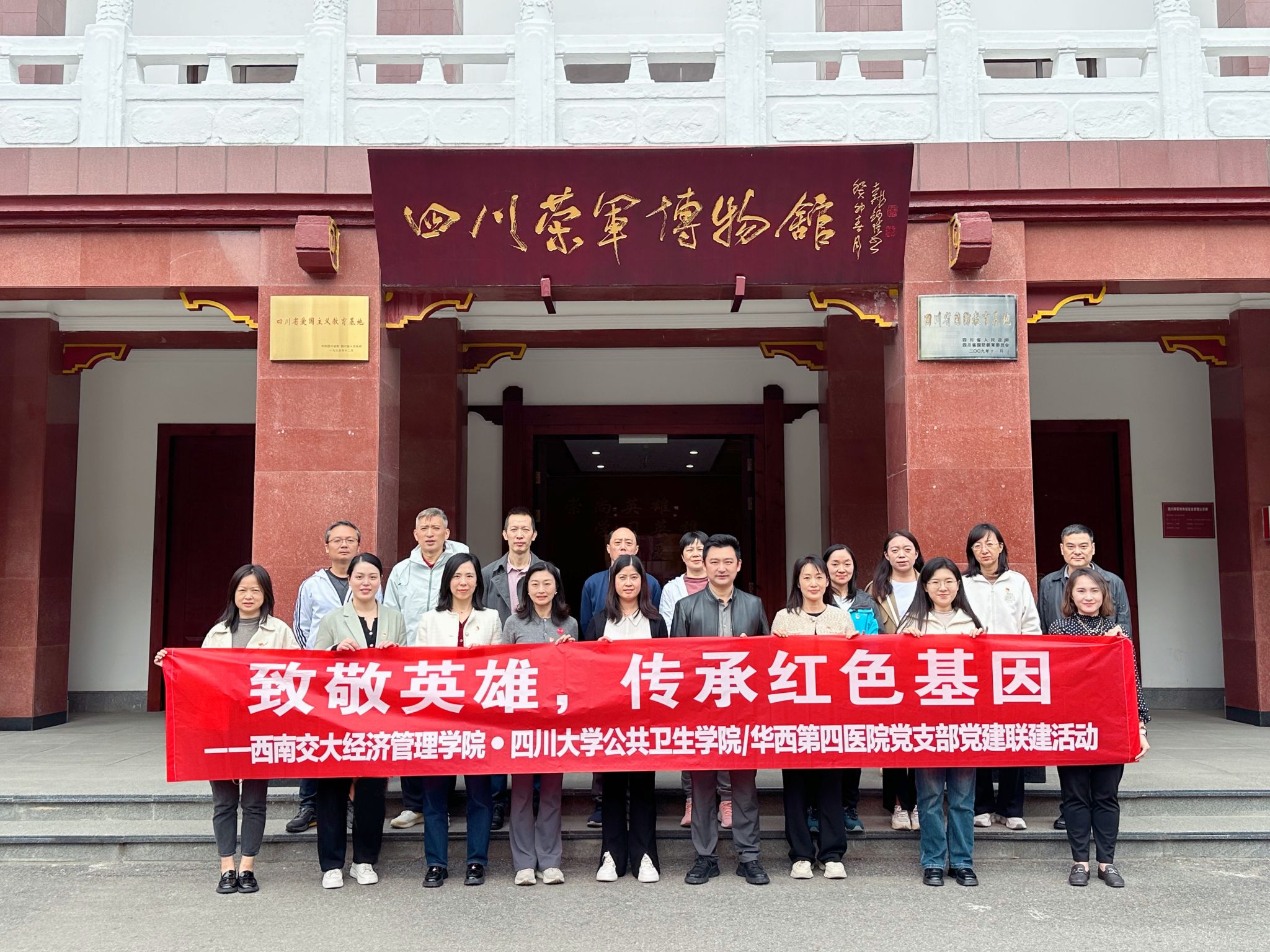 2024年10月30日下午,网投十大信誉可靠平台机关第一、第二党支部与四川大学公共卫生学院(华西第四医院)业务实体联合党支部共同前往四川荣军博物馆开展“致敬英雄,传承红色基因”主题党日活动。此次活动旨在通过参观博物馆,深入了解革命伤残军人的英勇事迹,弘扬爱国主义精神,进一步坚定党员的理想信念。