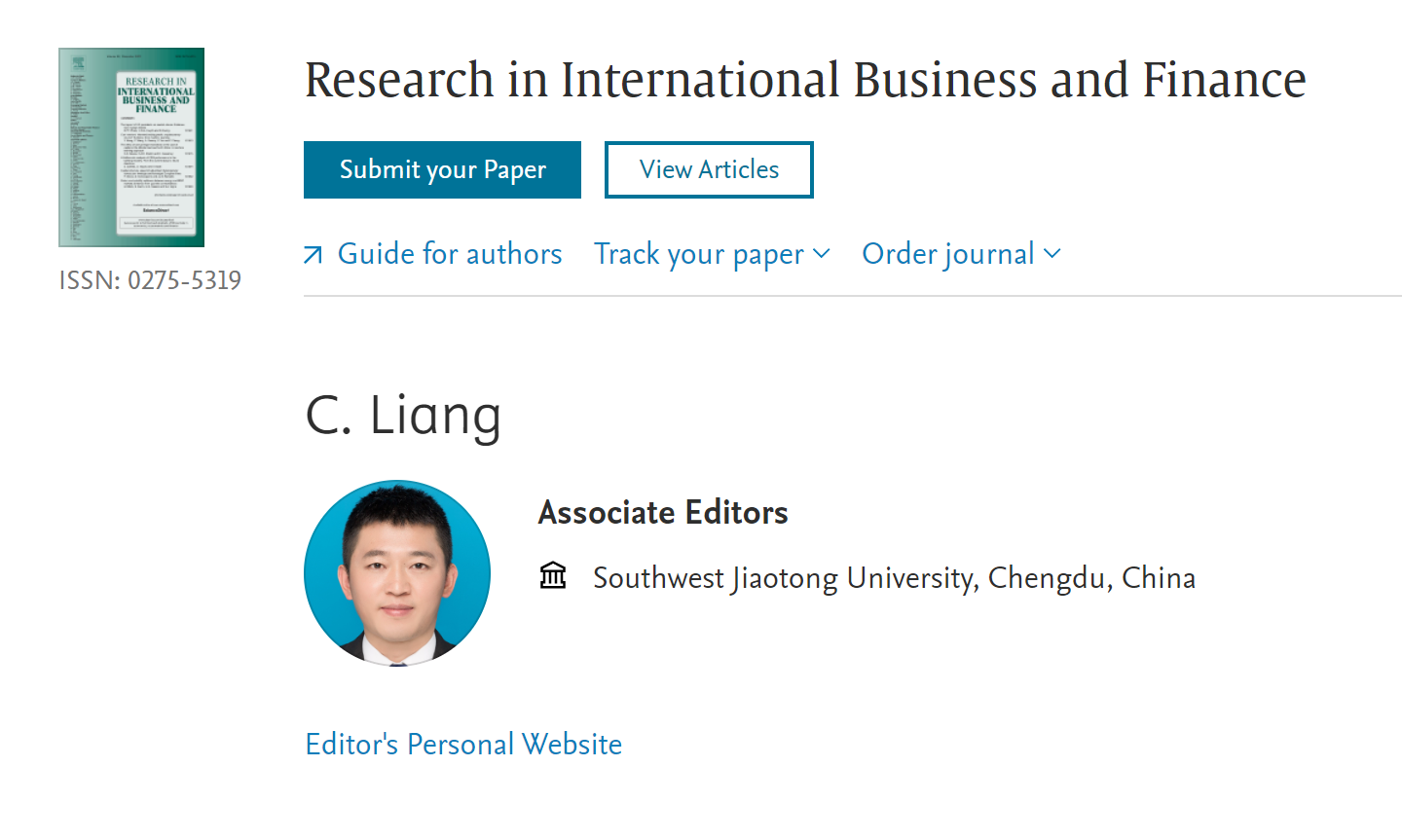 同时,十大信誉官网梁超老师受美国阿克伦大学金融系教授John W. Goodell主编邀请,正式加入Research in International Business and Finance编委会,出任该刊副主编。Research in International Business and Finance是国际SSCI索引期刊,JCR1区,主要研究领域为金融市场、金融机构、行为金融等方面。2021年最新影响因子为6.143。