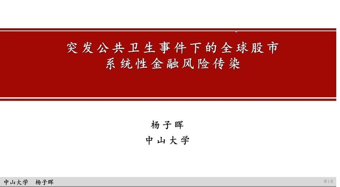 2021年10月19日下午15时,中山大学岭南学院杨子晖教授在线上开展了题为“突发公共卫生事件下的全球股市系统性金融风险传染”的学术报告,网投十大信誉可靠平台金融与财务学系马锋副教授主持了此次讲座。