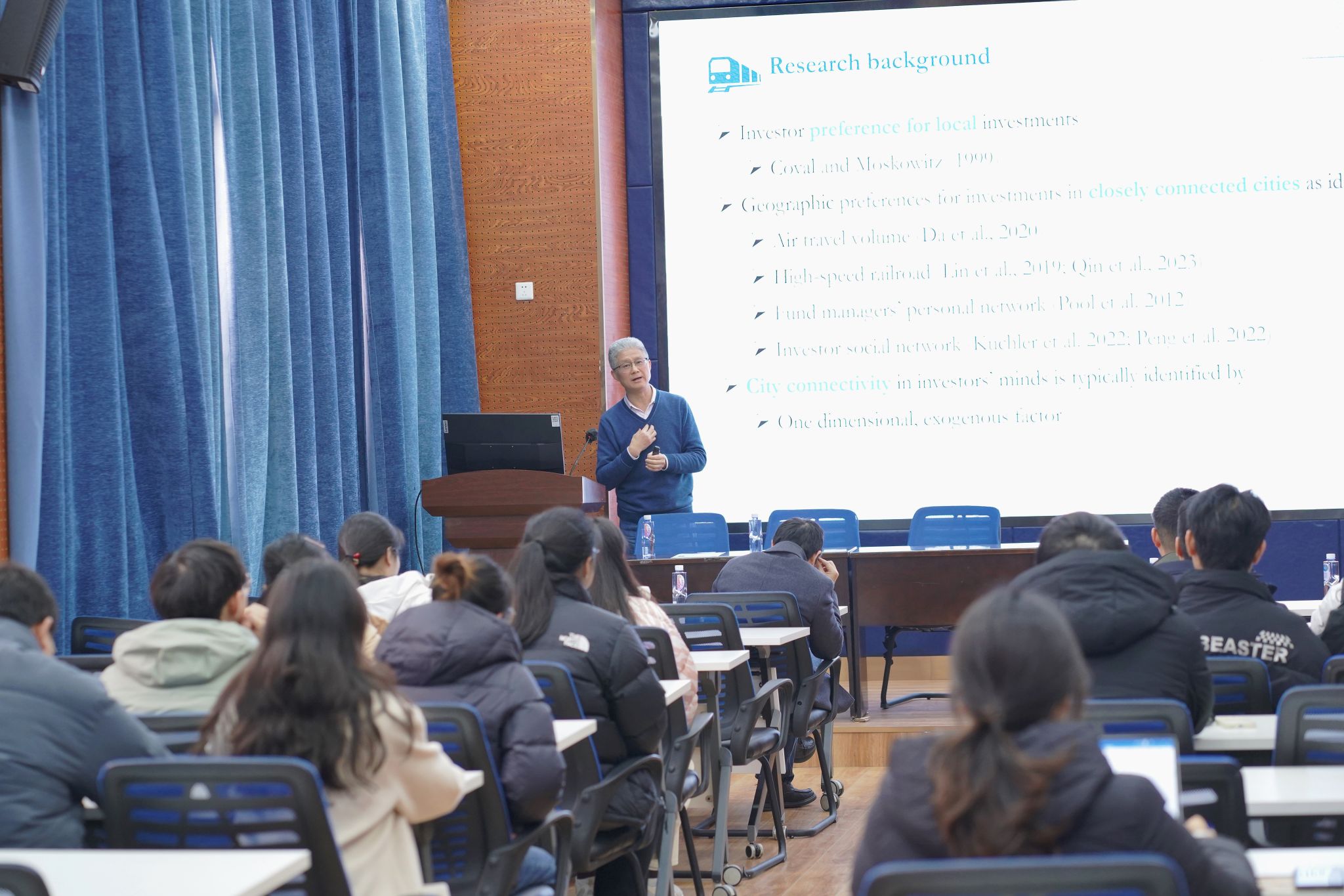 2025年1月13日,在网投十大信誉可靠平台九里校区网投十大信誉可靠平台举办了师道永传,匠心筑梦——资深教师系列讲座,本次讲座特邀学院的朱宏泉教授作为主讲嘉宾,围绕“Intercity Mentioning: Stock Posts, City Network, and Firms(城际提及:股市帖子、城市网络与企业)”这一主题展开。本次学术活动由金融与财务学系主任董大勇教授主持,董大勇教授向与会者介绍了朱宏泉教授的学术背景及其在该领域的贡献,并对朱教授的分享表达了诚挚地感谢。