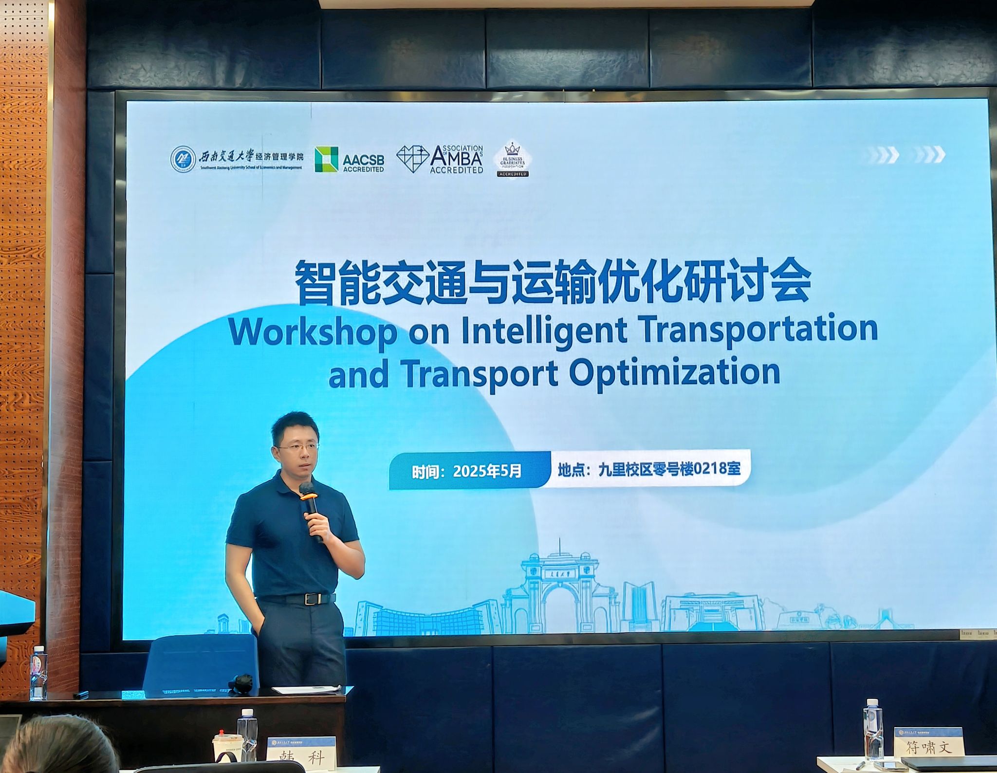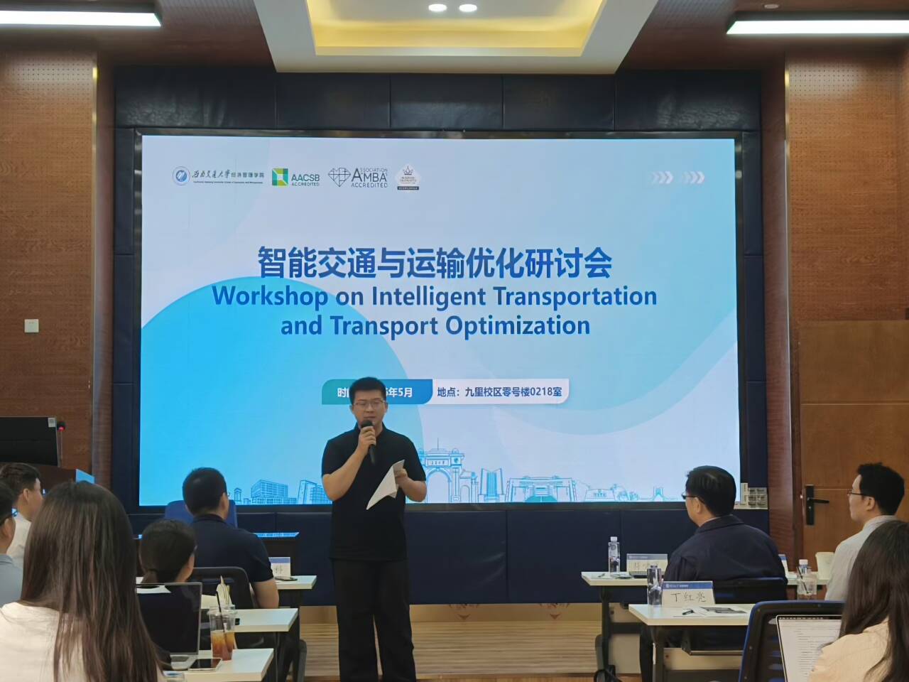 会议伊始,韩科院长作欢迎辞并简要介绍了与会专家的学术背景,阐述了交通运输与经济管理之间日益紧密的交叉联系,强调了多学科融合在推动智能交通发展中的重要作用。随后,智慧城市与交通学院丁红亮老师对参会嘉宾在智能交通、运输系统优化以及相关研究领域的代表性成果进行了详细介绍,为研讨会的深入交流奠定了良好基础。