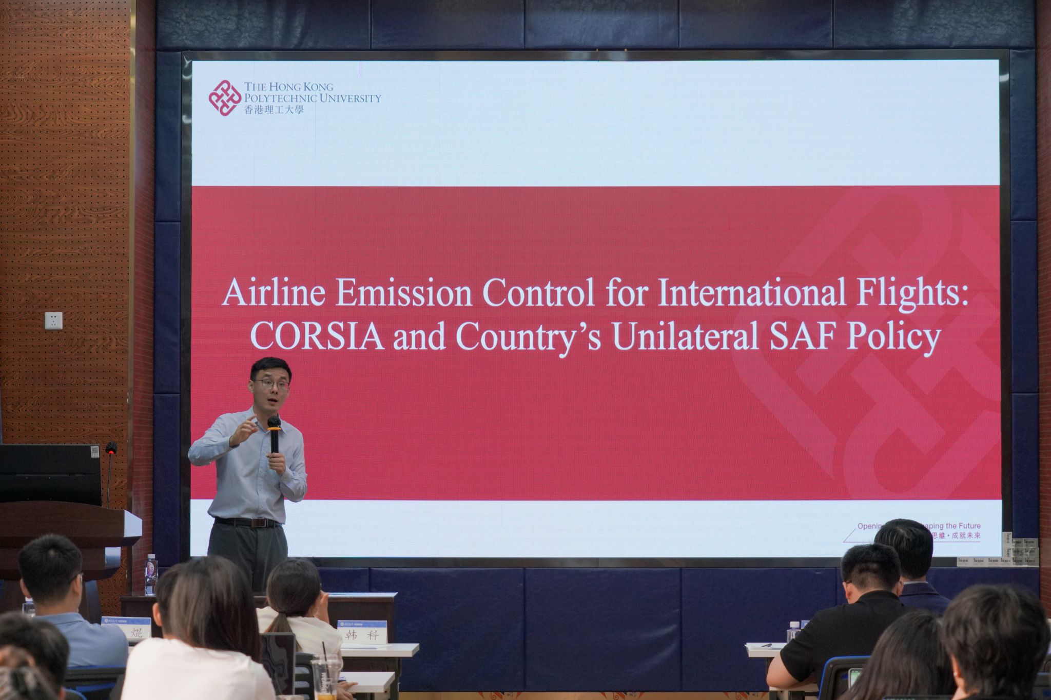其次,香港理工大学王焜助理教授作题为“Decarbonizing Aviation through Sustainable Aviation Fuel: Operations Research, Economic Analysis, and Policy Insights”的报告。王老师依次指出当前航空碳排放面临的关键问题与严峻挑战,分析了可持续航空燃油(SAF)在应对碳排放方面的有效性及其推广过程中存在的障碍,并介绍了其团队在该领域开展的三项经济学建模研究。在问答环节,王老师与学生围绕降低航空成本与SAF使用导致成本上升之间的平衡问题,以及不同燃油效率所带来的影响展开了深入讨论。