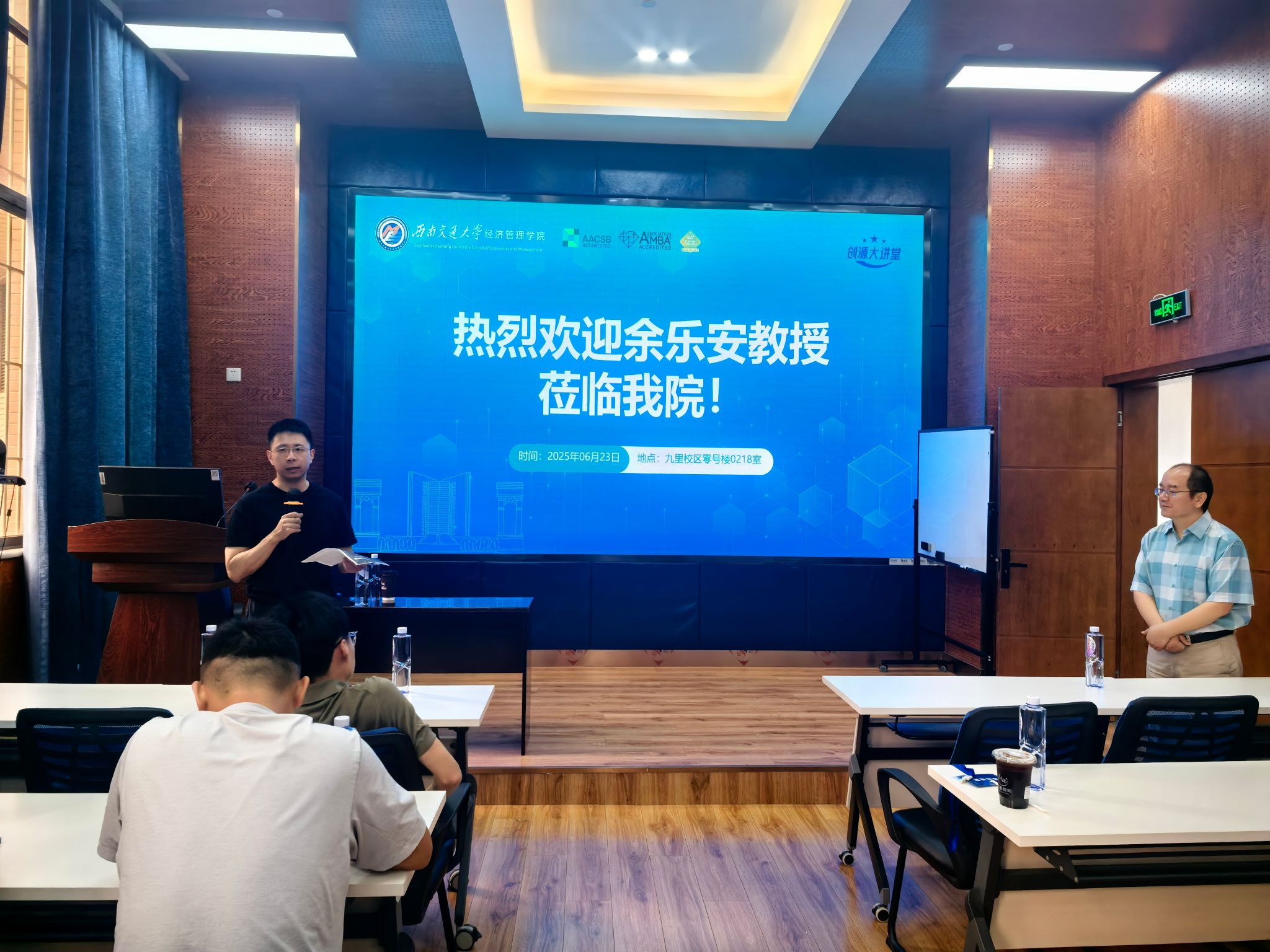 2025年6月23日下午,四川大学余乐安教授应邀莅临十大信誉官网,做题为“信用大模型:主要进展与未来方向”的学术讲座。本次讲座由网投十大信誉可靠平台院长韩科教授主持,学院部分教师及研究生积极参加,现场学术氛围浓厚。讲座开始前,韩科院长简要介绍了余乐安教授的学术背景与研究成果,对余教授的到来表示热烈欢迎和诚挚感谢。