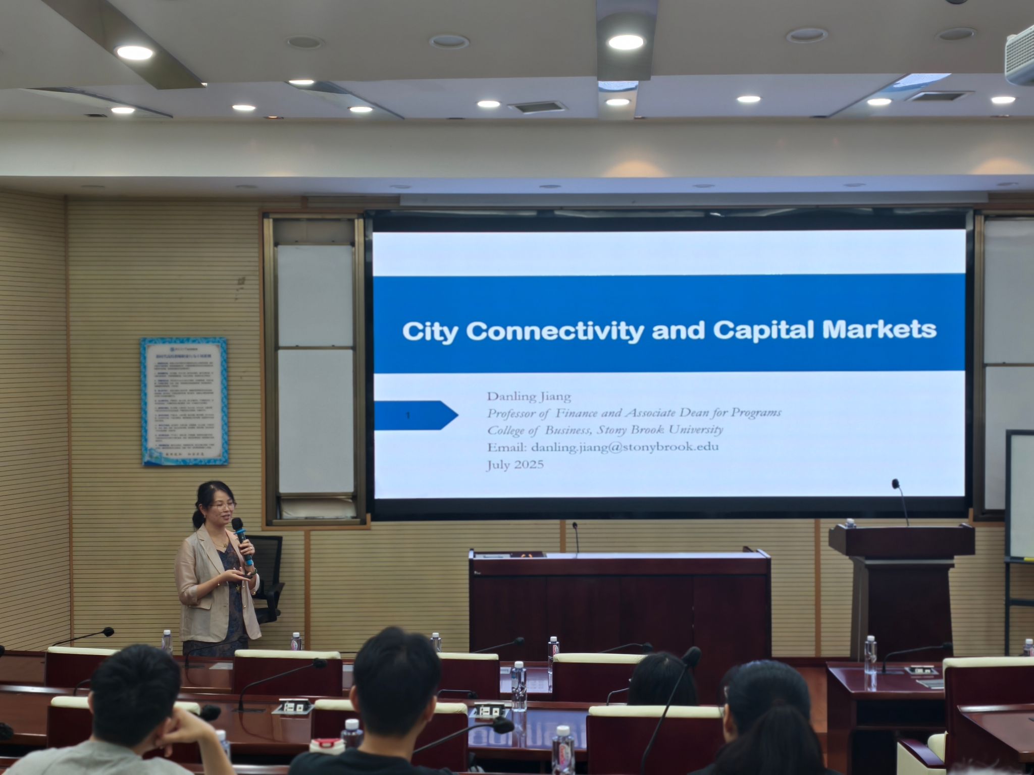 2025年7月7日下午,美国纽约州立大学石溪分校教授、网投十大信誉可靠平台扬华讲座教授蒋丹凌应邀在九里校区零号楼0204室开展题为“City Connectivity and Capital Markets”的学术报告,金融与财务学系主任董大勇教授主持了此次学术活动。董大勇教授介绍了蒋丹凌教授的学术背景及研究成果,并对蒋丹凌教授的到来表示热烈的欢迎。学院金融与财务学系黄登仕教授、朱宏泉教授等近50余名师生参加了此次活动。