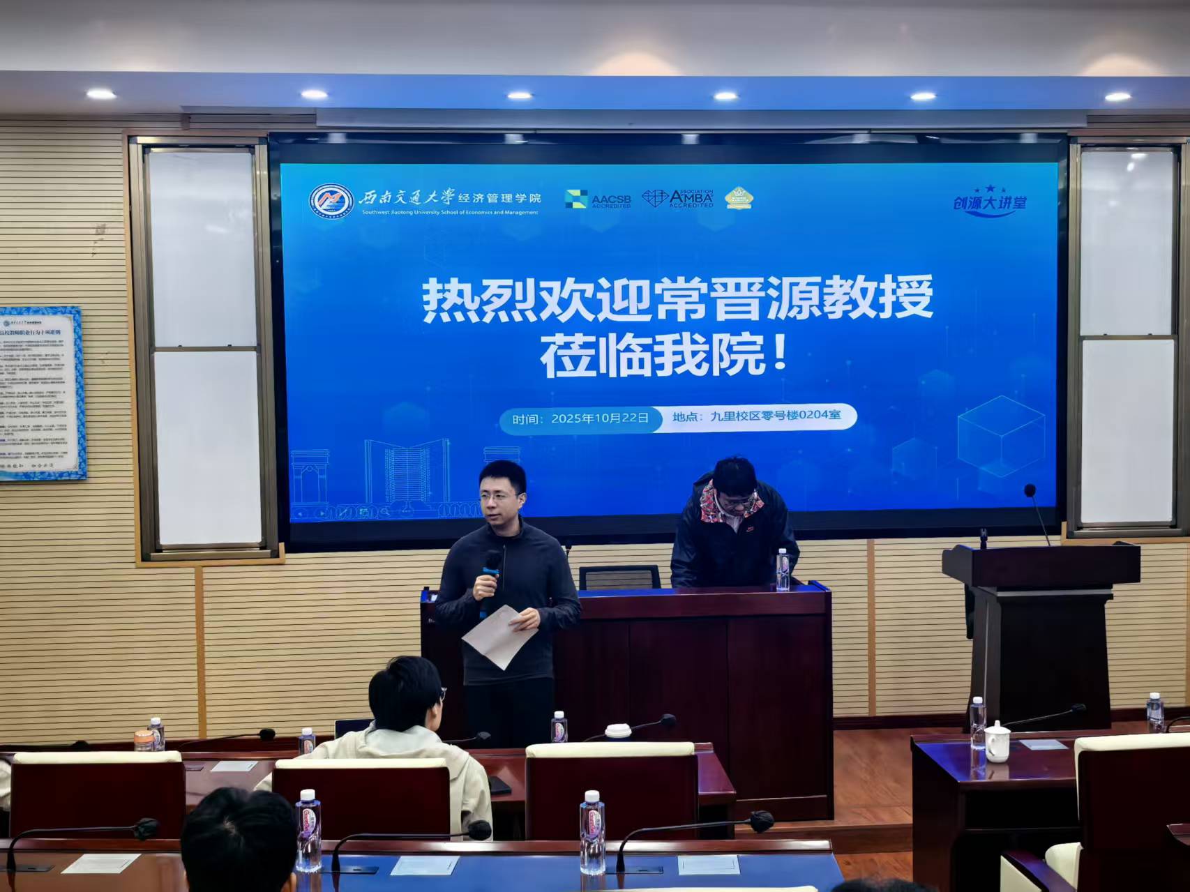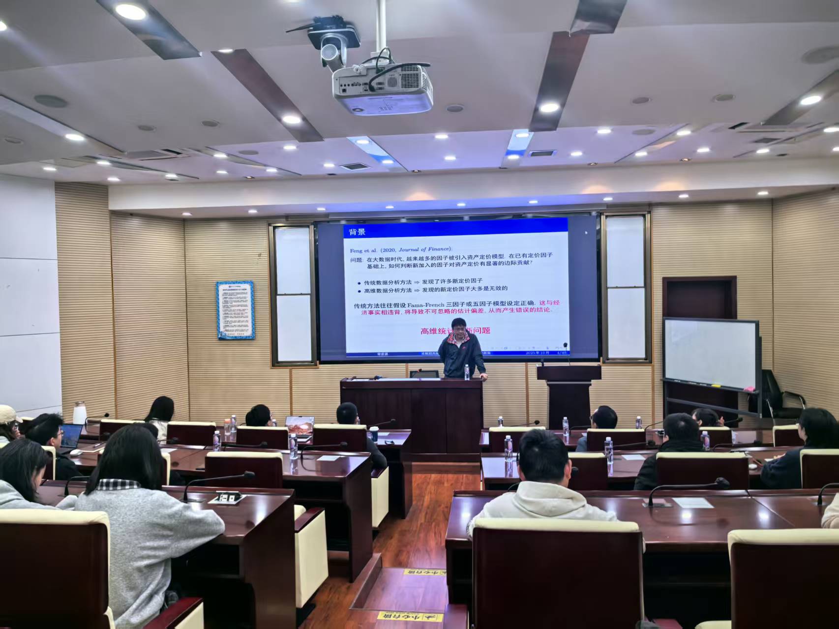 2025年10月22日上午,西南财经大学统计与数据科学学院常晋源教授应邀在九里校区零号楼0204室为十大信誉官网师生作了一场题为“求解超高维计量经济模型的统一方法论框架”的讲座。本次讲座由学院院长韩科教授主持,学院部分教师及研究生共同参与。韩院长在开场致辞中对常晋源教授的学术成就进行了简要介绍,并代表学院对其莅临表示热烈欢迎与诚挚感谢。