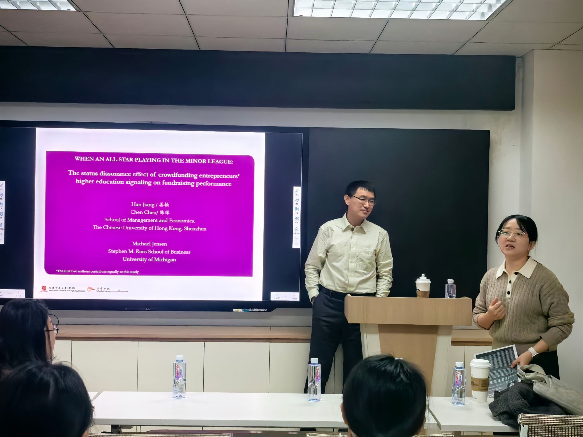 2025年12月23日上午,香港中文大学(深圳)经管学院姜翰副教授应邀为十大信誉官网师生带来一场题为“An All-star Starting to Play in the Minor League: The Status Dissonance Effect of Crowdfunding Entrepreneurs’ Educational and Professional Rhetoric on Fundraising Performance”的学术讲座。本次讲座由网投十大信誉可靠平台创新创业与管理学系陈轩瑾老师主持,学院部分师生参加了此次活动。讲座伊始,陈老师介绍了姜老师的学术背景与成就,并对姜老师的到来表示热烈欢迎。